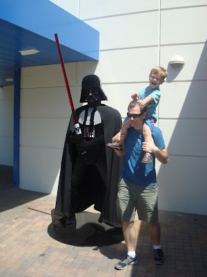 My only complaint is that the park is really geared toward families with an even number of family members, i.e. four seats to a ride or two plus two. There were several rides where one of us would have to ride solo, or with Grandma, and since Eli was on a total Daddy kick that week (that week - ha!), it was usually me.