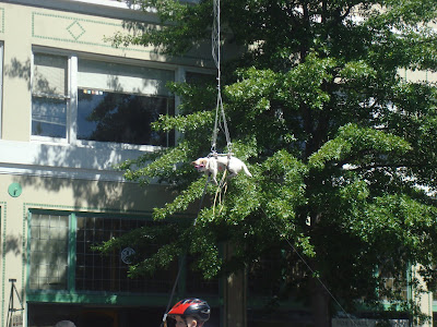 We went to Bend's downtown area to enjoy the parade (the highlight of which was this floating dog, a la Up), then walked to