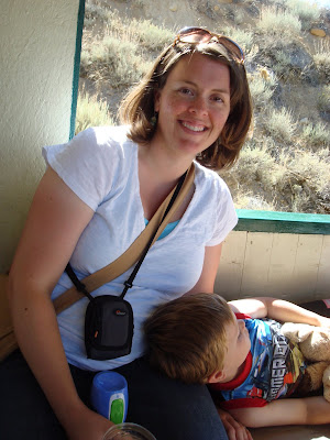 What time is it? It's meltdown time! Not surprisingly, between the change in routine, the time in the car, the walking, the heat, and the fact that neither of us slept all that well most of the trip all resulted in approximately one to two meltdowns per day, often because we were eating later than usual. The image above, I believe, is after he'd mostly recovered (but was still pouting a bit) from one of them, brought on by the fact that I wouldn't buy him a generic train in the gift shop (what, postcards aren't good enough for you, kid?). Elias continued his recovery in the car. By the time we got home none of us was up for much else so we ordered pizza (Wally's, in case you're ever in Carson City - it only gets 3 stars on Yelp and maybe it was because I was so tired and hungry by the time it arrived, but I thought it was damn good pizza).